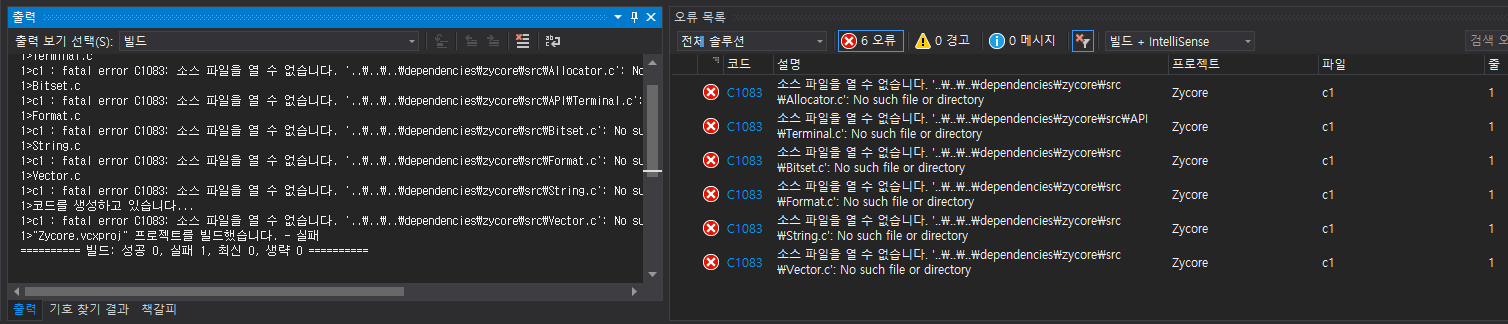 아~~~ 뭔데 ~~~~ 당황하지 말고 자세히 읽어보면 특정 리소스를 읽어올수가 없단다... zycore 에 저 녀석이 있는지 확인해보고 있다면 저 경로에 박아주면 되지 않을까?