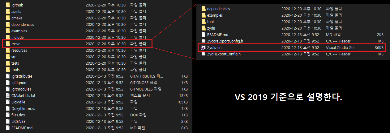zip으로 받던 클론을 받던 재량껏 내려받아주자. 아마 msvc 라는 폴더가 있을것이다.