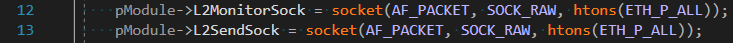 AF_INET 으로 L3계층 상단부터 데이터를 핸들링하도록 하고 SOCK_RAW 를 줌으로써, 이 계층의 데이터는 응용프로그램이 직접 다룬다고 선언한다. 그리고 IPPROTO_RAW를 줌으로써 어떤 특정한 프로토콜에 국한된것이 아닌, 전부를 아우르는 데이터를 다룰것이라고 일러둔다. 이런 조건으로 생성된 소켓은 "송신만 된다". 즉 14번라인의 L3MonitorSock 은 의미가 없다. 수신이 안되는데 뭘 모니터링하겠는가.