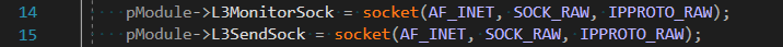 AF_INET 으로 L3계층 상단부터 데이터를 핸들링하도록 하고 SOCK_RAW 를 줌으로써, 이 계층의 데이터는 응용프로그램이 직접 다룬다고 선언한다. 그리고 IPPROTO_RAW를 줌으로써 어떤 특정한 프로토콜에 국한된것이 아닌, 전부를 아우르는 데이터를 다룰것이라고 일러둔다. 이런 조건으로 생성된 소켓은 "송신만 된다". 즉 14번라인의 L3MonitorSock 은 의미가 없다. 수신이 안되는데 뭘 모니터링하겠는가.