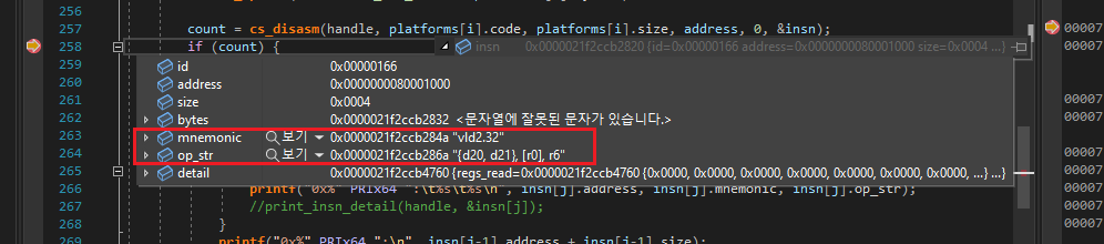 insn 인자엔 아까전에 cs_disasm 에서 받은 녀석을 올려주면 되고